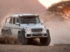 Überlegene 6×6-Allradtechnik, AMG-V8-Biturbo-Power und ein Auftritt, der keinerlei Zweifel aufkommen lässt: Mit dem seriennahen Showcar Mercedes-Benz G 63 AMG 6×6 wühlt sich ein Offroader in den Vordergrund, der abseits befestigter Wege das Nonplusultra in Sachen Vorwärtsdrang repräsentiert. 400 kW (544 PS), 6×6-Antrieb, Geländeuntersetzung, fünf Differentialsperren, Portalachsen, Reifendruckregelanlage und Spezialfahrwerk erlauben diesem Pickup ein Vordringen in Bereiche, in der die individuelle Mobilität normalerweise versandet. Wer angesichts dieser Eckdaten jetzt an ein Wettbewerbsfahrzeug à la Rallye Dakar denkt, ist auf dem Holzweg. Dank der Zutaten aus dem üppigen AMG Füllhorn in Sachen Innenraumveredelung genießen die Insassen auch bei allergrößten topografischen und meteorologischen Verwerfungen bestmöglichen Komfort. Apropos Holzweg: Den gibt es beim Wüsten-Funcar dann doch. Auf der Ladefläche – die ist mit massivem Bambus verkleidet.