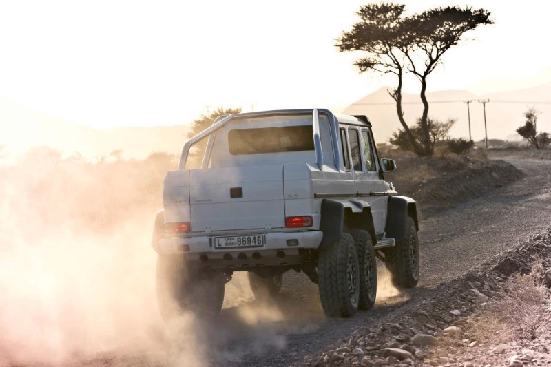 Überlegene 6×6-Allradtechnik, AMG-V8-Biturbo-Power und ein Auftritt, der keinerlei Zweifel aufkommen lässt: Mit dem seriennahen Showcar Mercedes-Benz G 63 AMG 6×6 wühlt sich ein Offroader in den Vordergrund, der abseits befestigter Wege das Nonplusultra in Sachen Vorwärtsdrang repräsentiert. 400 kW (544 PS), 6×6-Antrieb, Geländeuntersetzung, fünf Differentialsperren, Portalachsen, Reifendruckregelanlage und Spezialfahrwerk erlauben diesem Pickup ein Vordringen in Bereiche, in der die individuelle Mobilität normalerweise versandet. Wer angesichts dieser Eckdaten jetzt an ein Wettbewerbsfahrzeug à la Rallye Dakar denkt, ist auf dem Holzweg. Dank der Zutaten aus dem üppigen AMG Füllhorn in Sachen Innenraumveredelung genießen die Insassen auch bei allergrößten topografischen und meteorologischen Verwerfungen bestmöglichen Komfort. Apropos Holzweg: Den gibt es beim Wüsten-Funcar dann doch. Auf der Ladefläche – die ist mit massivem Bambus verkleidet.