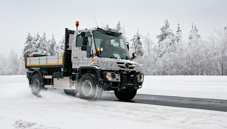 Für die Wintererprobung fuhren die Entwickler ins finnische Rovaniemi, wo Temperaturen bis zu minus 25 °C, meterhoher Schnee und vereiste Straßen dem Fahrzeug keinerlei Schwächen zugestehen. Auf dem Testgelände mit Fahrdynamik- und Handling-Strecke, Wendeschleife und Waldstrecke unterzog das zehnköpfige Entwickler-Team die Unimog vier Wochen lang härtesten Tests. Dazu statteten die Ingenieure die Fahrzeuge mit modernster Messtechnik aus. So konnten wichtige Erkenntnisse über das Kaltstartverhalten der Motoren und die Funktion des Antriebsstrangs bei der extremen Kälte gewonnen werden.