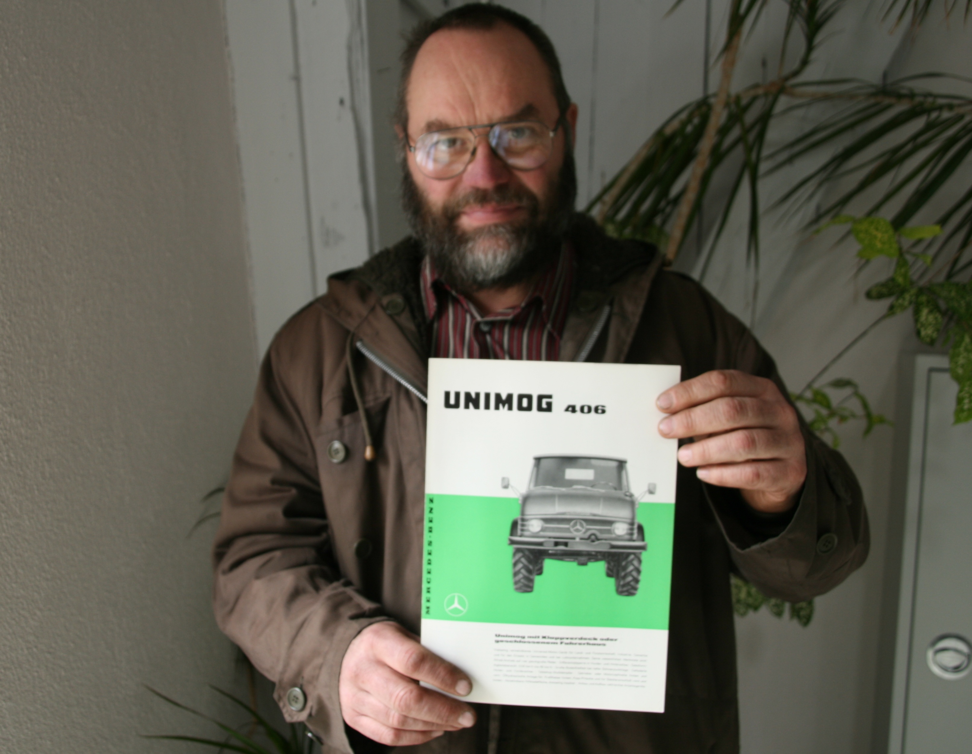 Nach Manfred Florus, Wilfried Scheidemann und Roland Feix stellt Jürgen Afflerbach seinen Lieblingsprospekt vor. Jürgen ist ein technisch versierter Kenner der Unimog-Oldtimer und treuer Besucher vieler Unimog-Veranstaltungen.