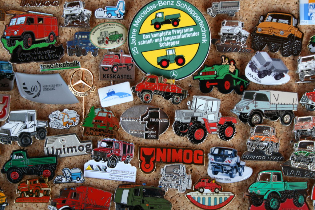 Michael Wessel, der sein ganzes berufliches Leben im Werk Gaggenau tätig war, wurde durch Recherchen zur Geschichte des Unimog so von diesem Fahrzeug begeistert, dass er sich einen Unimog aus dem Jahr 1952 kaufte und den Unimog-Club Gaggenau gründete. Er sammelt alles rund um den Unimog und somit auch Pins – mehr als 200 sind es zwischenzeitlich.