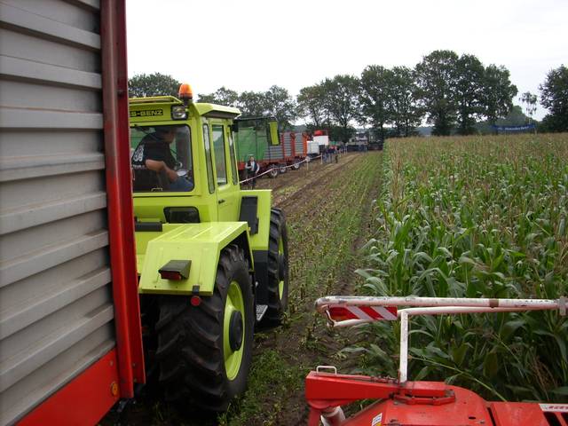 Die von den hier ansässigen Lohnunternehmern organisierten Häckselwagen warten nun auch schon auf den Samstag.