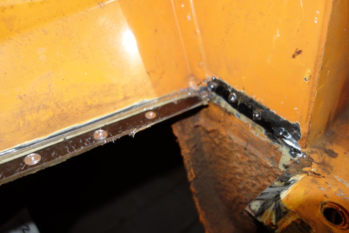 Ich habe mich dann für eine überlappende Lochpunkschweißung entschieden, um eine möglichst große Stabilität herzustellen. Hier muss ich dann nach dem Sandstrahlen besonderes Augenmerk auf die Konservierung legen, um langfristig eine Rostbildung zu vermeiden. Die Anschlüsse an die Kantung habe ich durch Absetzen der Laschen hergestellt.