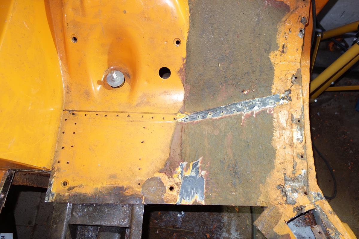 Das Austrennen des Bodenbleches ist mühsam, da gefühlt hunderte Schweißpunkte zu trennen sind und die Träger darunter erhalten bleiben müssen.