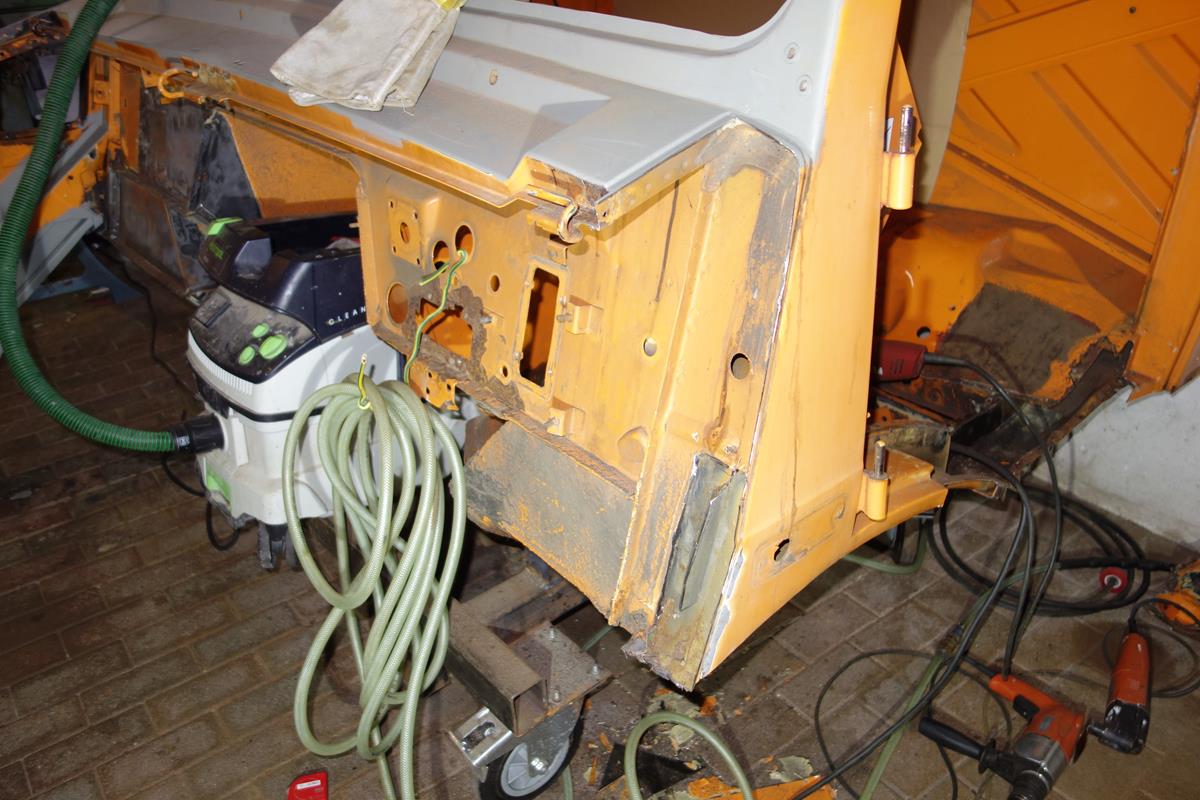 Immer weniger Bodenblech ist übrig. Manchmal frage ich mich während der Arbeit, wieviel mehr Aufwand es wohl sein würde, wenn ich das Blech hätte erhalten wollen... Respekt vor den Restaurateuren, die das Durchziehen!