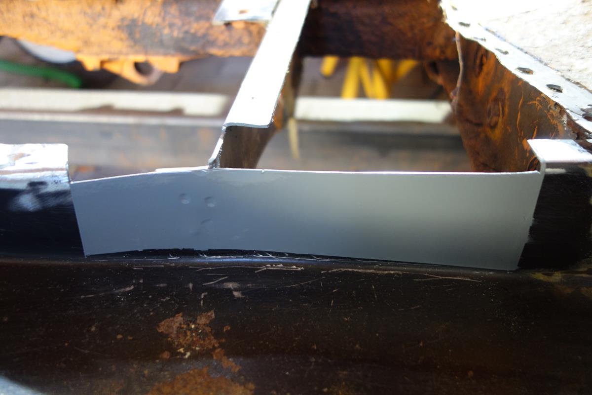 Als Grundierung habe ich FERPOX auf dem Repblech und am Längsträger verwendet. Die abschließende Konservierung des Spalts werde ich dann vermutlich mit OVATROL ÖL herstellen.