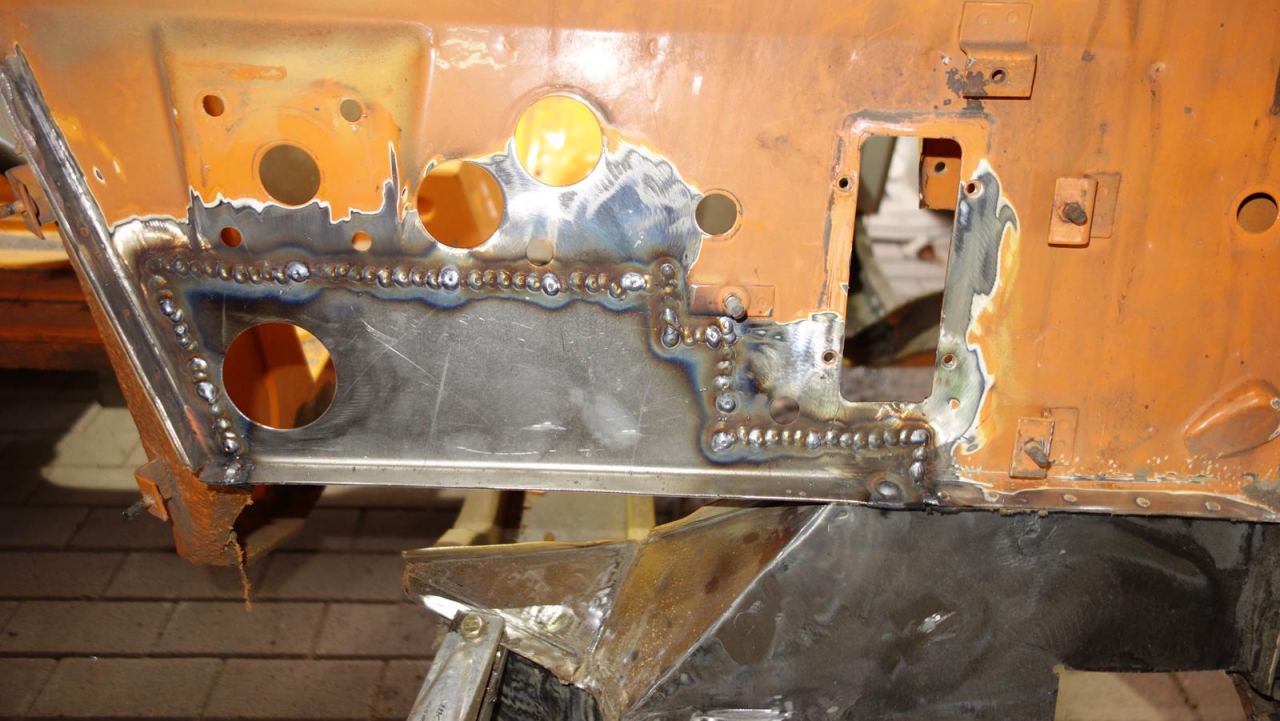 als nächstes war der Träger im Einstiegsbereich der Fahrerseite an der Reihe. Das Blech ist mit abgesetzten Kanten überlappend eingeschweißt. Die Spalte habe ich dann mit OWATROL ÖL versiegelt. Ich bin echt begeistert von dessen Kriechfähigkeit!