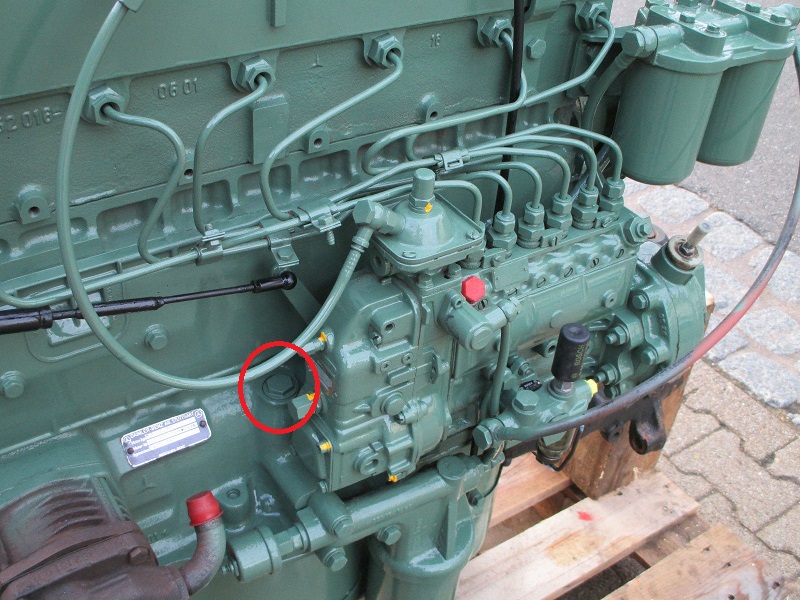 Der Anschluss sitzt hinter der Einspritzpumpe