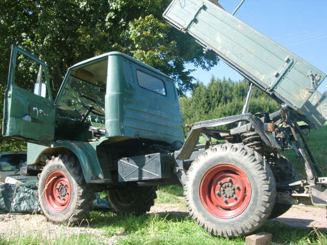 habe auch einen unrestaurierten 411er in original graugrün. Der wurde nie lackiert, siebt aber noch ordenlich aus. Bis auf neue Reifen und neues Verdeck ist wirklich nichts dran gemacht. Frontlader und Anbauplatte waren ab Werk verbaut. Bordwände sind noch orginal, Sitzbezüge auch, wenn auch etwas zerfleddert.