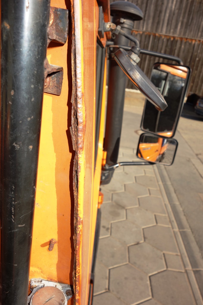 Das Dachblech sah so schlimm nicht aus. Dass an dieser Stelle ein starker Ast einen Angriff auf das Führerhaus unternahm und dass dort eine Instandsetzung durch eine "Fachfirma" durchgeführt wurde, war mir vor Kauf bekannt.