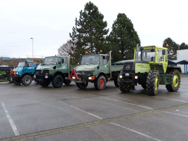... Es gibt Kaffee und Kuchen. Man lernt sich neu kennen oder trifft sich wieder. Jedenfalls wird sich angeregt unterhalten. Zwischen Freiburg und Lörrach gibt es wohl keine ausgeprägte Unimog-Szene. So sehen sich die meisten hier nur einmal im Jahr - an Silvester.