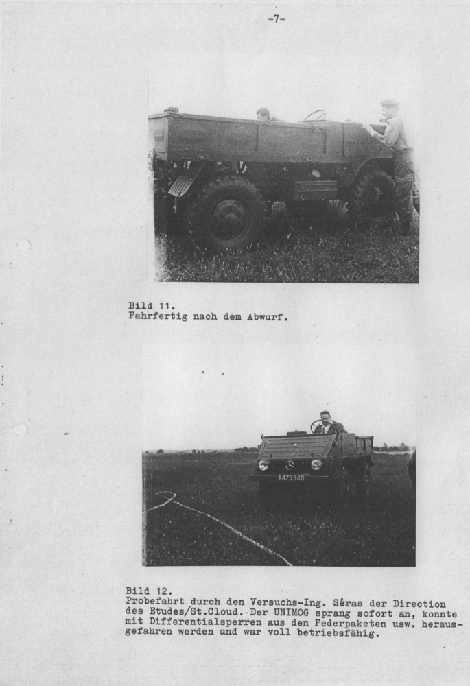 Die Protokolle der Abwurfversuche bei der französischen Armee und Testfahrten der deutschen Truppenteile.