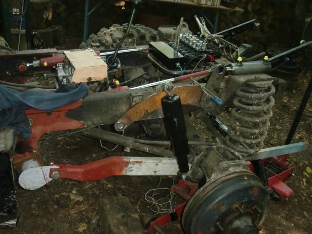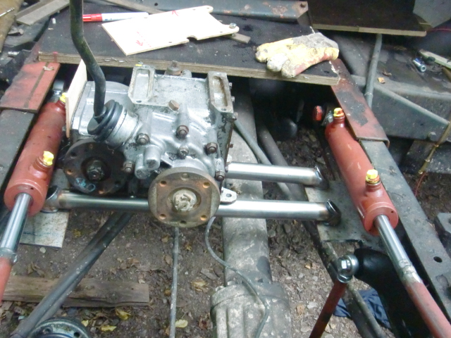 Das Suzuki-Getriebe soll natürlich unter die Pritsche (versteckt) werden.Leider ist es wegen dem HKH nicht möglich den Zapfwellen ausgang mittig unter die Hängerkupplung zu setzten so das ich jetzt den Serien mäßigen Platz beibehalten werde.Der hintere Antrieb vom Zwischengetriebe zum Abtrieb erfolgt mit einer Käferantriebswelle der Vordere wird am Getriebe mit dem Serienkreuzgelenk und mit einer 2CV Antriebswelle erfolgen.