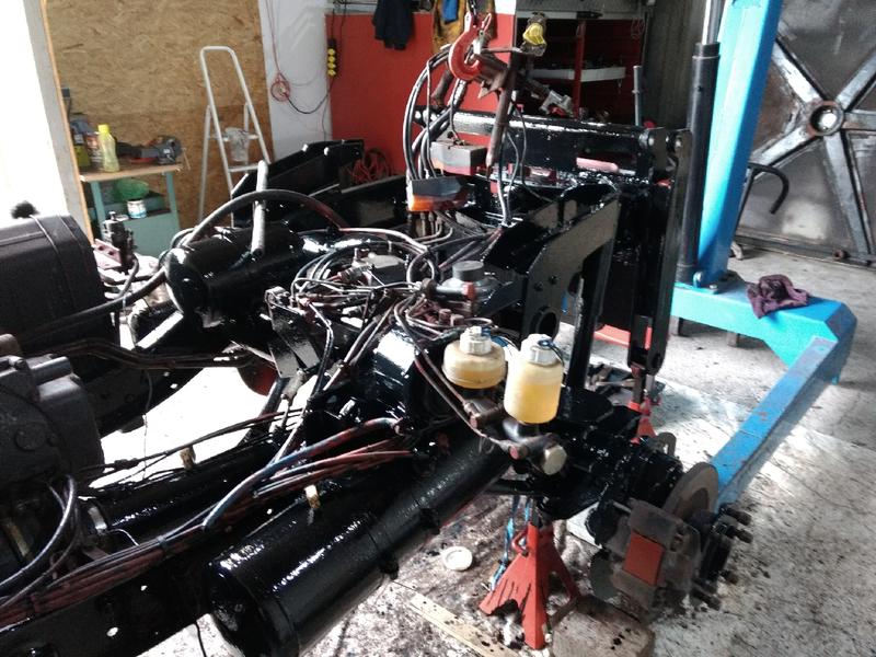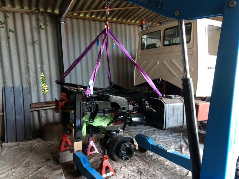 Dazu habe zuerst den Heckkraftheber jetzt endgültig montiert. Hintergrund ist, dass ich das Gewicht vom Rahmen von der Achse nehmen wollte, damit ich die oben genannten Bauteile ausbauen kann.