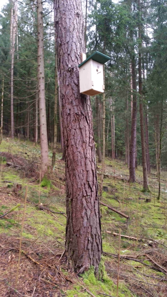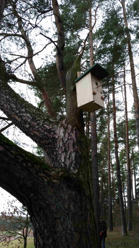 nachdem letztes Jahr 150 Linden, 150 Baumhasel, 100 Esskastanien gepflanz wurden (alles Bäume die irgendwann blühen), wurden jetzt 8 Vogelnistkästen angebracht. Alle nach Empfehlung eines Fachmannes, d.h. Himmelsrichtung Nord/Ost und mindestens 2 m Bodenabstand. Die Nistkästen wurden noch mit unterschiedlichen Durchmessern der Einfluglöcher versehen. Von 26 mm bis 45 mm. D.h. von der kleinen Meise bis zur Amsel, bzw. Star finden alle ihr perfekt zugeschnittenes Zuhause. Vögel sind da angeblich sehr wählerisch... . Ich lass mich überraschen wer hier alles einzieht