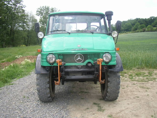 Verkaufe hier schwerenherzens meinen Unimog U406 ,Bj. 1972,ATM,2700H, ca. 200tkm,Landwirtschaftliche ausführung,großes Getriebe, Zapfwelle vorne u. hinten 540/1000, vorne 2 doppelt wirkende anschlüsse, hinten 1 und druckloser rücklauf, heckkraftheber, bereifung 14,5/20 , 2 kreisbremsanlage, alters-entsprechender zustand,Frontlader FL4, Tüv 03/13, technisch o.k., und von außen könnte er ein bisschen kosmetik vertragen..