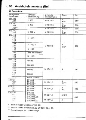 Kann mir jemand das Anzugmoment für die Radmuttern des U411.110 (alte Achse) nennen?