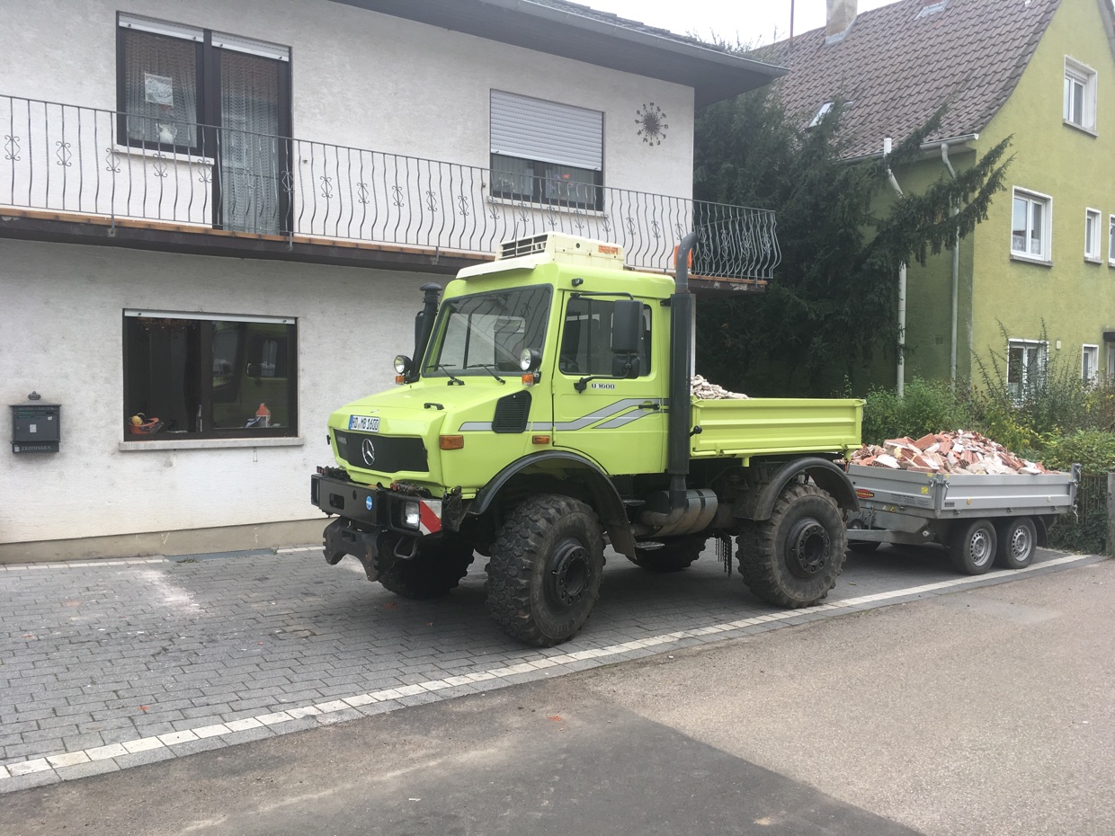 bei derzeitiger Komlettsanierung der Außenhülle unseres Hauses, darf der Unimog natürlich auch mit ran.