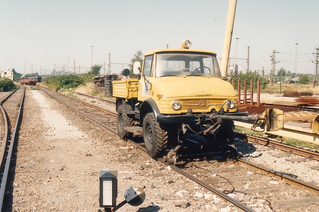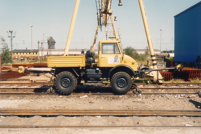 hier kommt ein 2-Wege-Unimog aus dem Arbeitsbereich Rangierdienst, aufgenommen am 27.05.2020 in Mülheim (Ruhr) beim Stahlhandel Ancofer. Das Fahrzeug wurde 1978 an die Vorgängerfirma Coutinho Eisenhandel geliefert.