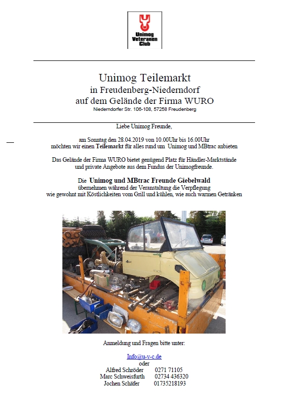 hier für Alle noch einmal der Hinweis auf unseren Unimog Teilemarkt in Niederndorf: