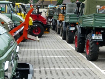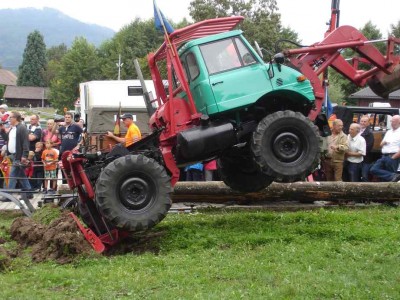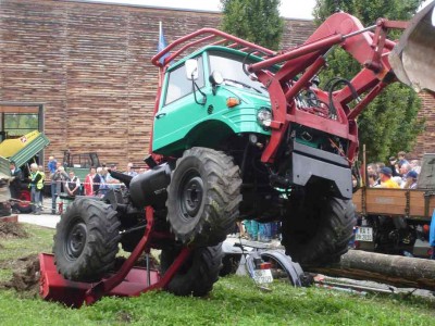 Vor dem Unimog-Museum organisieren wir von der MOE Vorführungen mit LIPCO Stammschütteler angebaut an einen U 406.