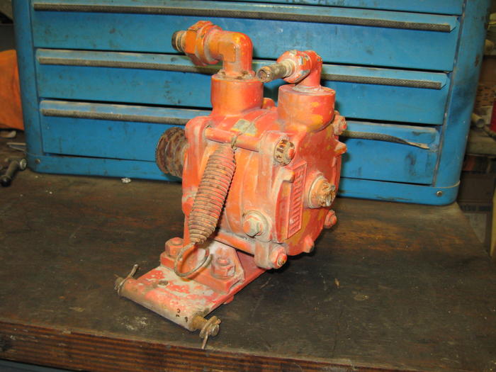 Biete die gezeigte Wasserpumpe für den Sprühbalken einer Schmidt Vorbaukehrmaschine. Pumpe lässt sich leicht drehen.