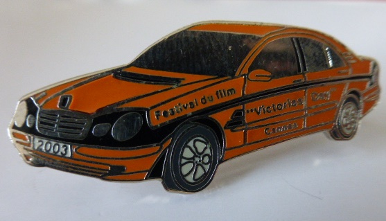 BR 211 Festifal du Film “Victorias Day” Cannes 2003. Abmessung: 38 x 17 mm. Qualität: Emaille. Rückseite: Silber geriffelt mit Chrystal Geneve Pins.
