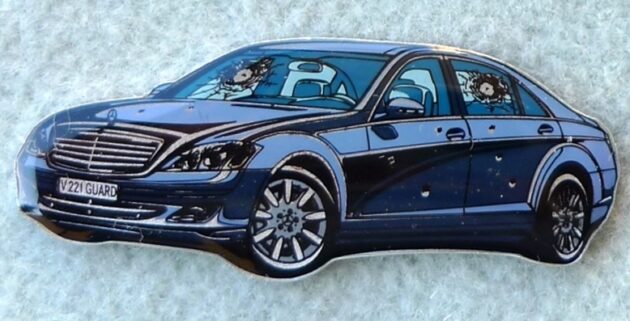 S-Klasse Limousine blau mit Einschussloecher, Epoxy Qualitaet, Abmessung: 40 mm