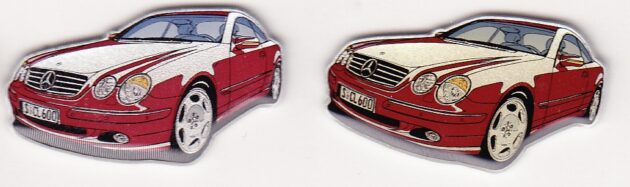 C 215 S-Klasse Coupe , Größe 40x20mm.Mit Kennzeichenbeschriftung S-CL-600 und auf der Rückseite Mercedes Benz Geneve 3/99 Farbvariante