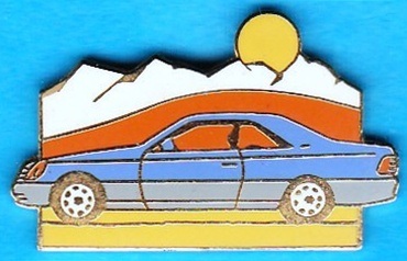 C 140 Coupe , Blaugraues S-Klasse Coupe mit Berge und Sonne im Hintergrund und auf der Rückseite steht:Mercedes-Benz Schweiz AG Größe:30mm x 18mm