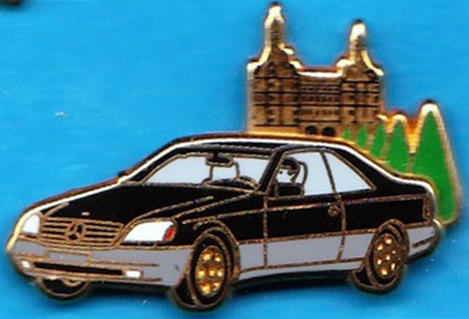 C 140 Coupe , S-Klasse in Schwarz mit Schloß im Hintergrund Pin ist Zweiteilig und in Gold Größe:32mm x 22mm