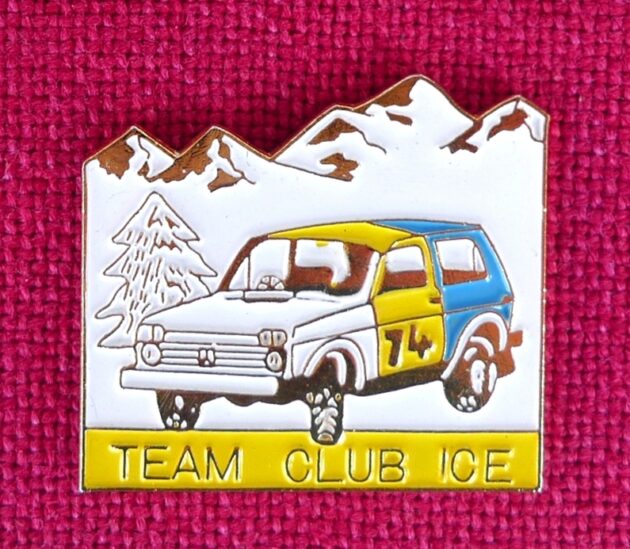 Einsatzfahrzeug in Blau mit 2 Polizisten in Gold. Größe:28m x 23mm