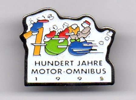 Mercedes-Benz Hundert Jahre Motor Omnibus 1999. Abmessung: 23 x 20 mm. Qualität: Softemaile. Rückseite: Schwarz glatt.