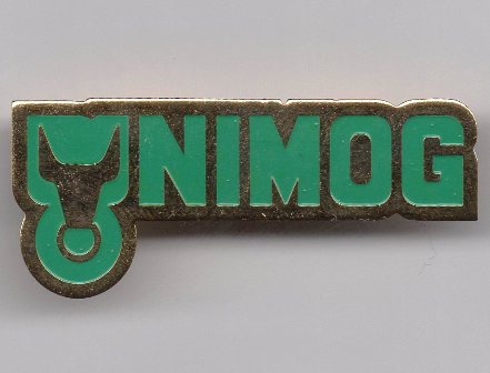 UNIMOG-Schriftzug mit Markenzeichen “Ochsenkopf” als “U”. Abmessung: 40 x 17 mm. Qualität: Geprägt. Rückseite: Gold glatt mit Buch&Bild.