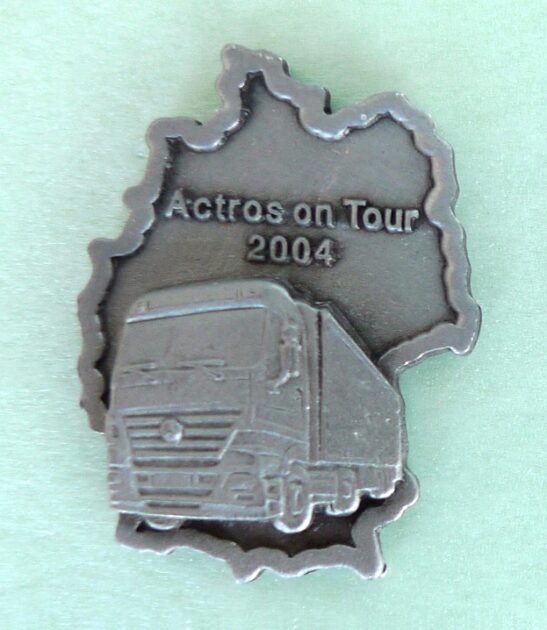 Größe 45x25mm.Reliefpin. Mit Schriftzug VL 2001 Strategie – und Produktforum.Actros Farblich blau hinterlegt.