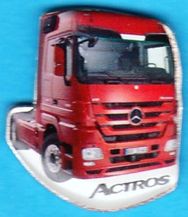 Rote Zugmaschine mit der Aufschrift:ACTROS Große: 22mm x 25mm