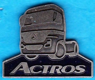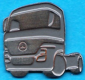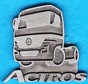 Rielief-Pin :ACTROS in Action kleine Schrift ,auf der Rückseite der Stern und Mercedes-Benz Größe:25mm x 29mm