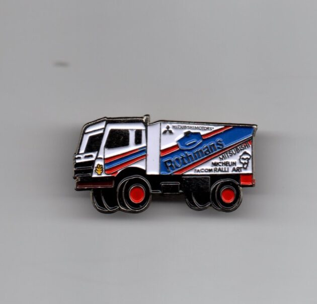 Blau/ Weisser Rallye Begleit-LKW mit Beschriftung:Rothmans Mitsubishi Motors Michelin Facon Ralli ART; Mercedes 1935 4 x 4 Paris le Cap 92 Abmessung:36mm x 19mm