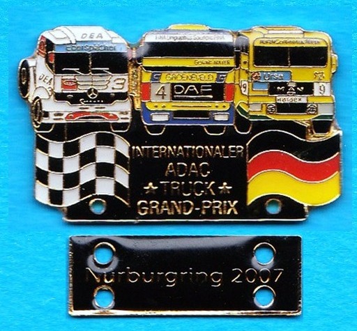 Pin mit Anhänger : INTERNATIONLER ADAC TRUCK GRAND-PRIX Nürburgring 2007 ( Farbvariante 2 ) Größe:39mm x 24mm – 32mm x 10.5mm