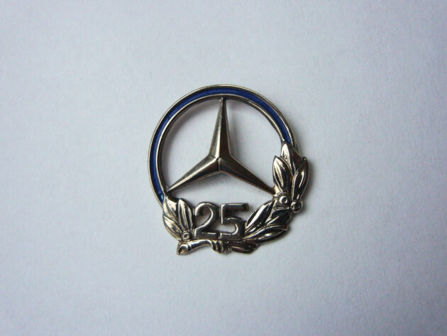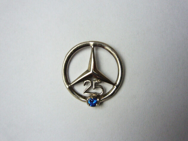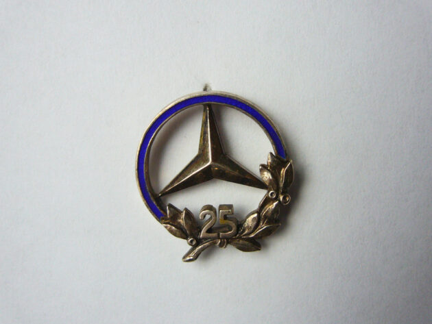 Dies ist der aktuelle Pin für 25 Jahre Betriebszugehörigkeit. Ich vermute das es kein original ist, sondern ein Produkt einer Neuauflage durch den Hersteller. Material 835 Silber