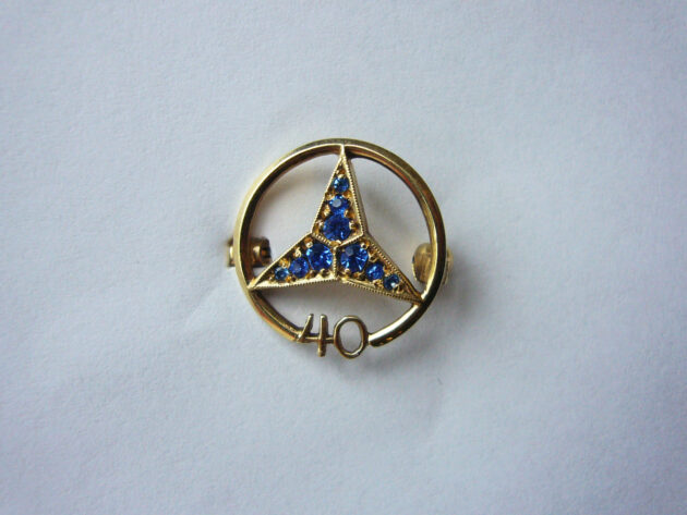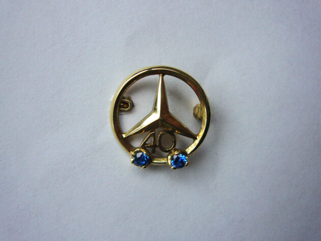 Dies ist die aktuelle 40 Jahre Nadel mit zwei Saphiren. Es gibt davon noch eine Brosche für Frauen. Material 585 Gold
