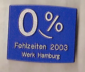 Fehlzeiten 0% 2003 Werk Hamburg Harburg blau , 20 x 16 mm
