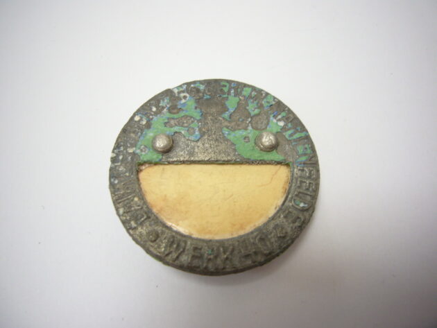 Brosche für Vorarbeiter aus der Nachkriegszeit. Diese Broschen dürften noch in den 50ern – 60ern Verwendung gefunden haben. Durchmesser: 40 mm