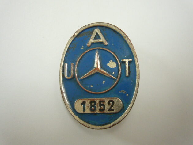 Mercedes Benz Vorarbeiter Brosche aus der Nachkriegszeit. Diese Broschen dürften noch in den 50ern – 60ern Verwendung gefunden haben. Durchmesser: 40mm