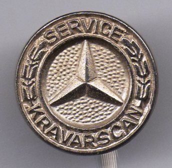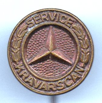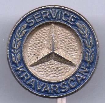 Nadel mit silberen Stern und Beschriftung: SERVICE KRAVARSCAN. Abmessung: 14 mm. Qualität: Geprägt. Rückseite: Bronze glatt.