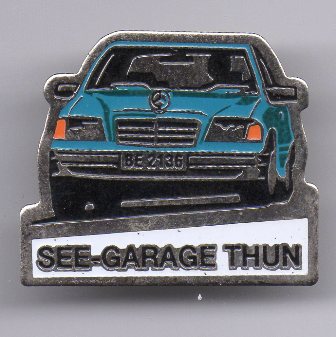 See Garage Thun. Abmessung: 25 x 22 mm. Qualität: Softemaille. Rückseite: Silber glatt mit Service Werke.