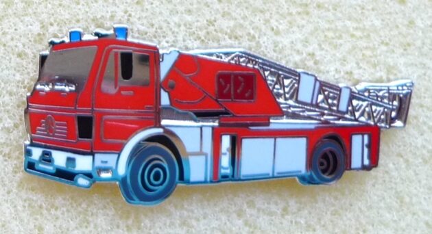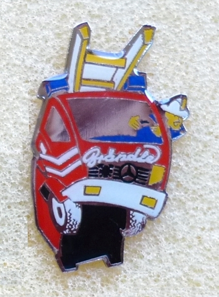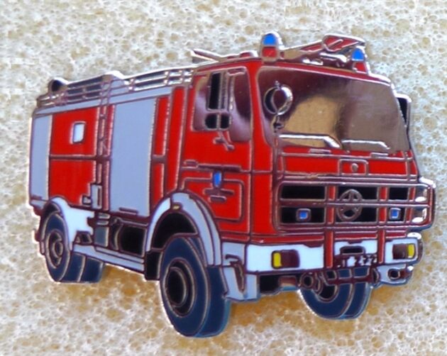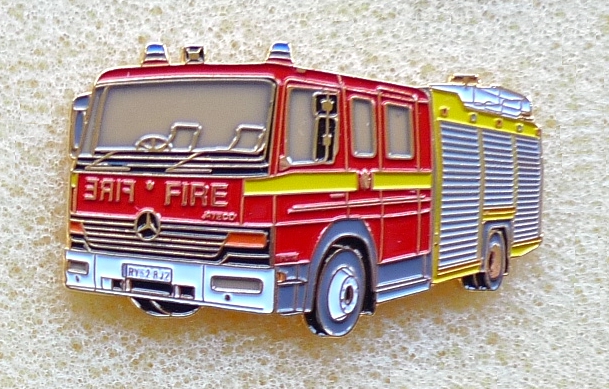 Atego Feuerwehr England , 42 x 25 mm , Softemaile , hinten gold glatt
