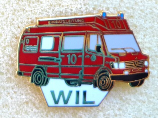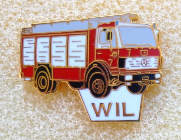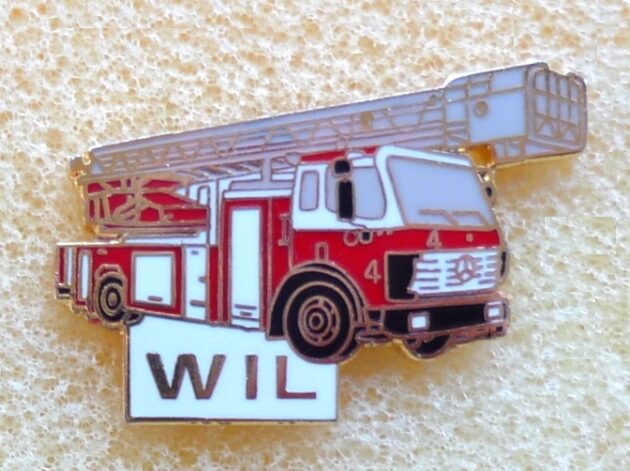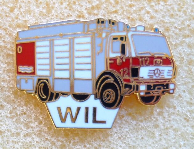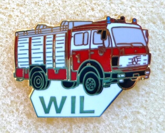 Feuerwehr Wil 4, Hartemaile, 29 mm Pin ist Teil einer Serie. Leiterwagen