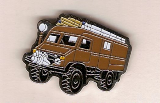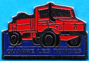 Roter Unimog mit blauen Schriftzug: QUARRE LES TOMBES Größe 30mm x 20mm