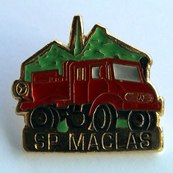 Unimog-Feuerwehr SP Maclas, Rückseite goldfarben Größe:18.2mm x 26.4mm Den Pin gibt es auch in Silber Nr.:6771